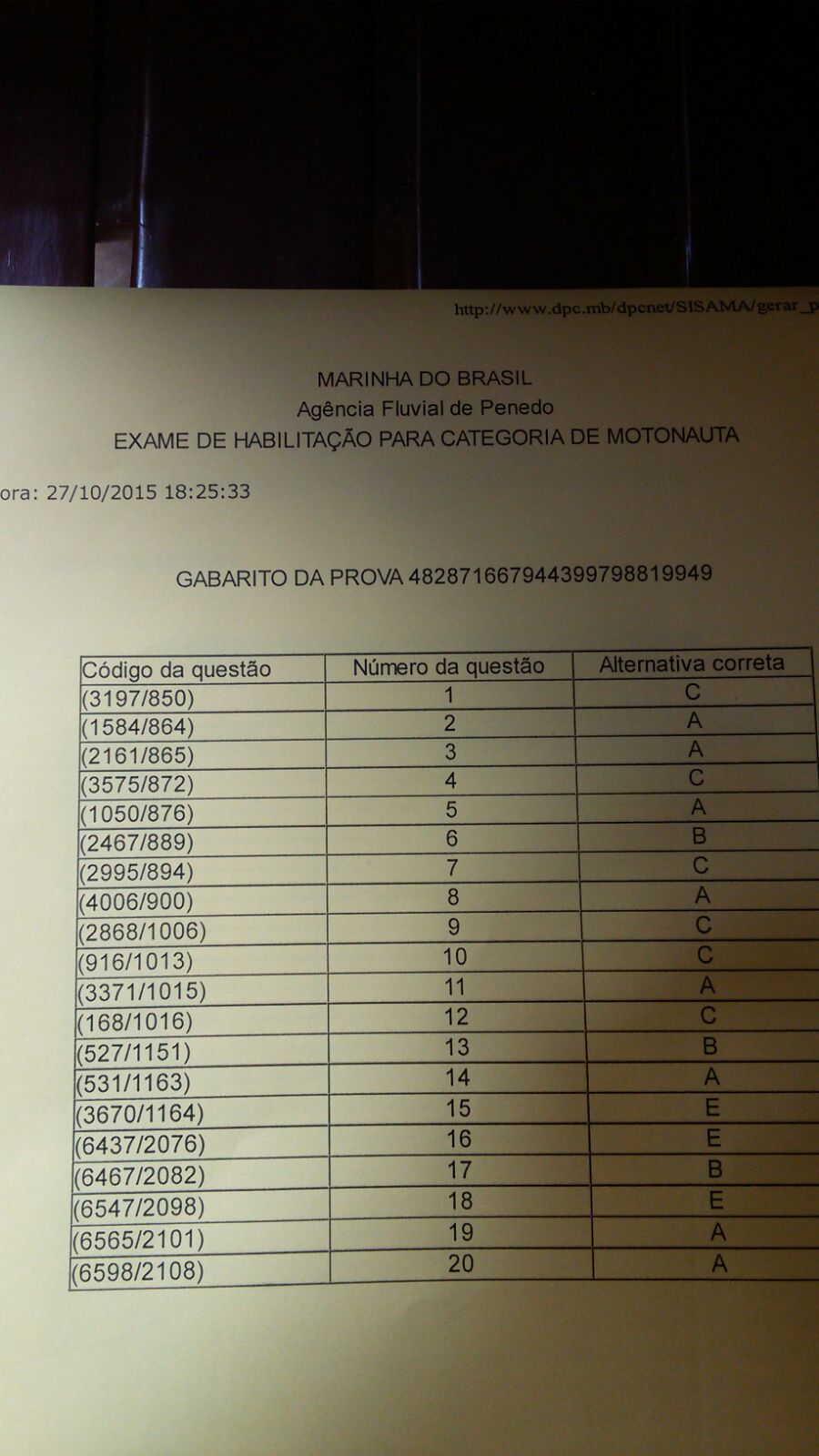 RESULTADO OFICIAL DO EXAME DE HABILITAÇÃO ARRAIS-AMADOR E MOTONAUTA OUT/2015