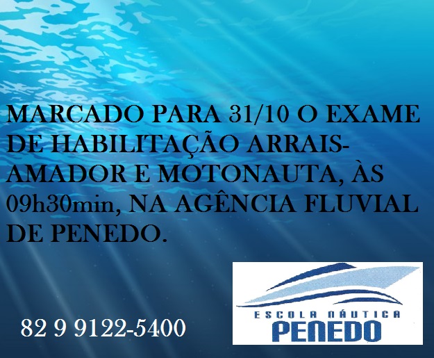 * Formação de condutores para as Categorias: Arrais-Amador e Motonauta *Fone: 82 9122-5400 *E-mail: escola.nauticapenedo@hotmail.com * LOCAÇÃO DE VAGAS para guarda de embarcações e Motos aquáticas
